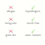 Da der Schmuck aus wasserdichtem Edelstahl gefertigt ist, müssen Sie sich nie wieder Sorgen um das Verblassen oder Anlaufen Ihres Schmucks machen.