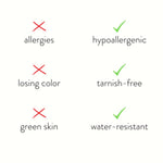 Da der Schmuck aus wasserdichtem Edelstahl gefertigt ist, müssen Sie sich nie wieder Sorgen um das Verblassen oder Anlaufen Ihres Schmucks machen.