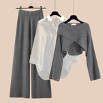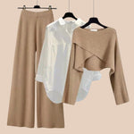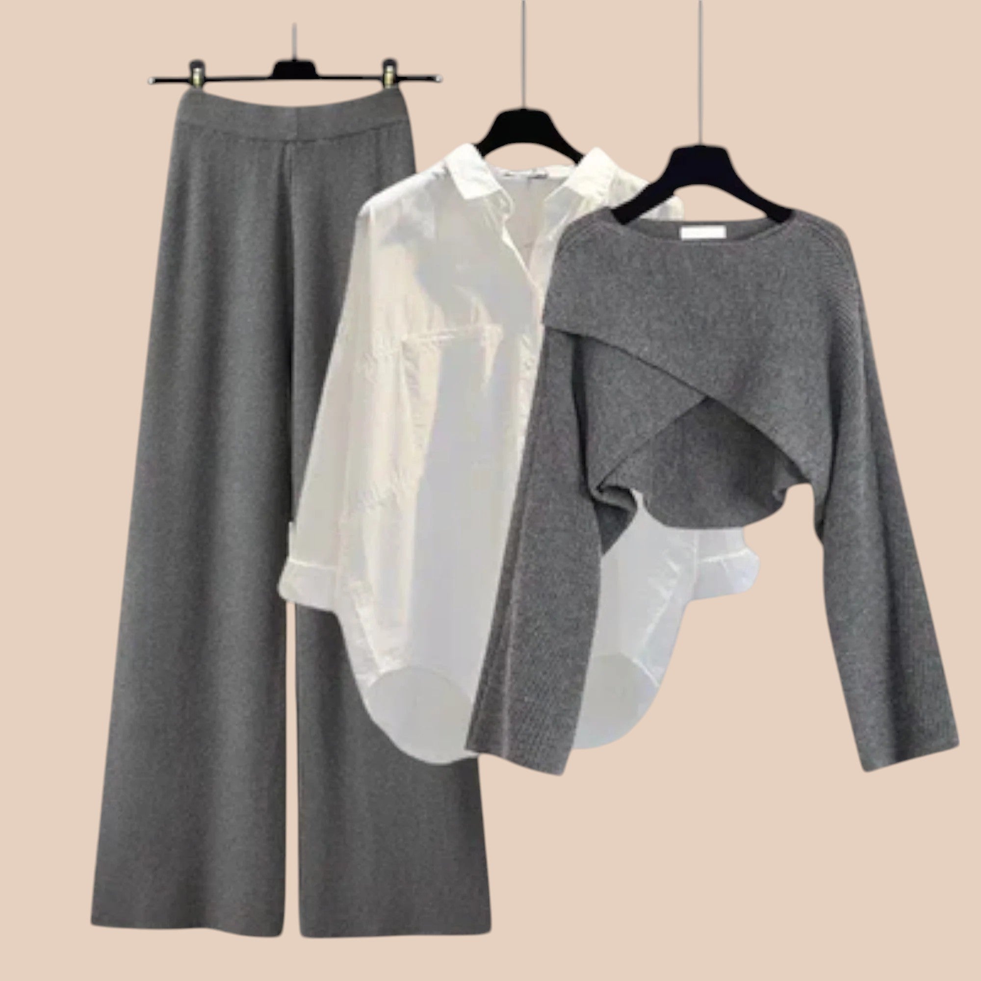 Entdecken Sie das perfekte Damen-Set von Lignée! Dieses dreiteilige Ensemble vereint Stil, Komfort und Vielseitigkeit. Bestehend aus einem eleganten Pullover, einem klassischen weißen Hemd und einer weiten Hose ist es ideal für das Büro und legere Anlässe.