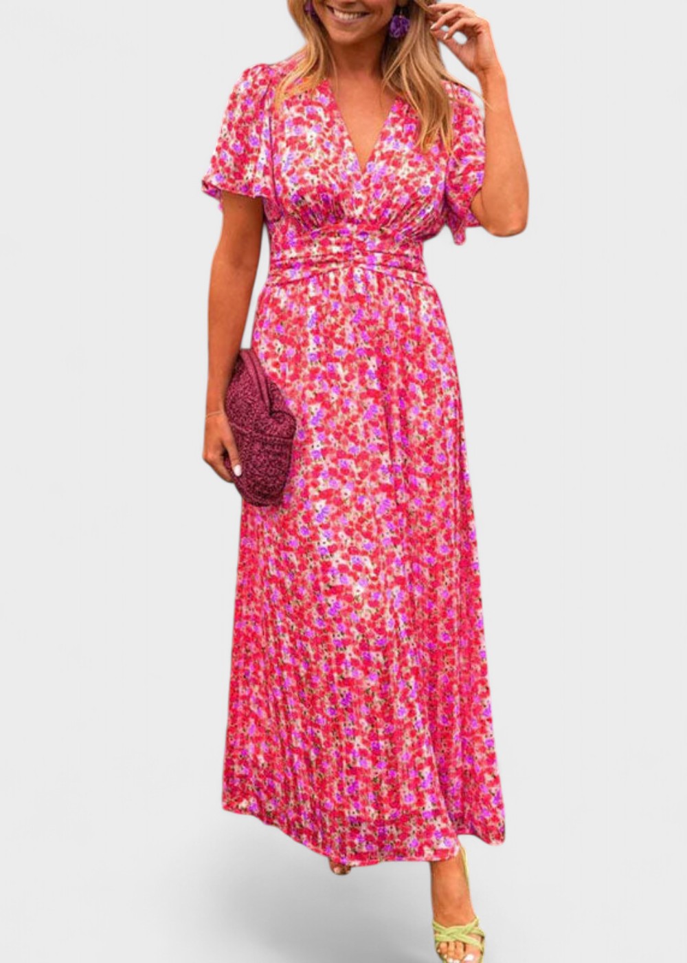Découvrez la robe longue fleurie Bianca , un incontournable pour vos journées ensoleillées au jardin, au marché ou lors de vos soirées chaleureuses. Son motif floral vibrant et ses couleurs fraîches créent un look enchanteur, tandis que son décolleté en V féminin apporte une touche de charme naturel.