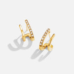 Adoptez un style élégant et minimaliste avec ces boucles d'oreilles griffes en or 18 carats et cristaux. Conçues pour imiter deux piercings et fabriquées en acier inoxydable résistant à l'eau et au ternissement, ces boucles d'oreilles deviendront votre paire de prédilection au quotidien.