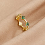 Cette magnifique bague s'inspire du trèfle à quatre feuilles. Gardez-la précieusement près de vous pour un peu de chance et d'éclat tout au long de la journée.