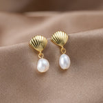 Boucles d'oreilles en perles d'eau douce et coquillages dorés
