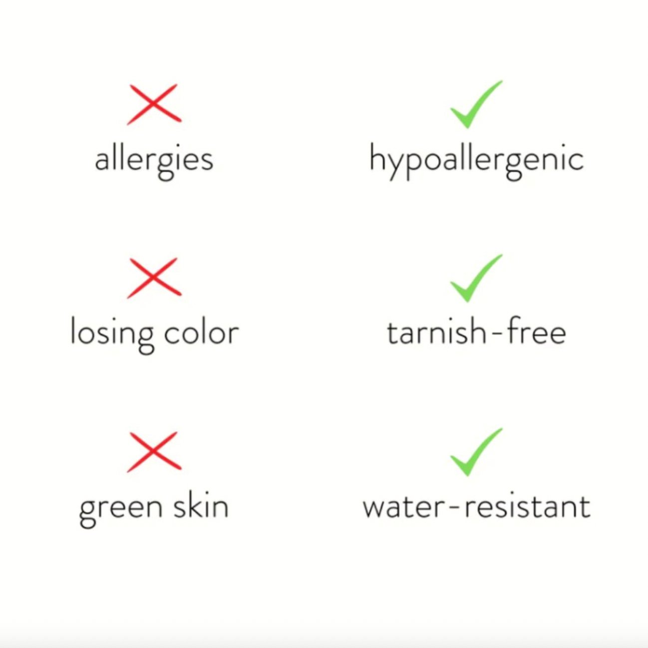 Fabriqué en acier inoxydable étanche, vous n'aurez plus jamais à vous soucier de la décoloration ou du ternissement des bijoux.